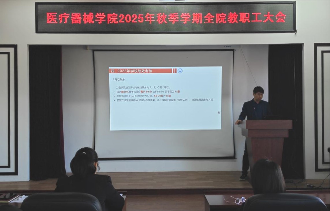 最后,崔勇明确了2025年学校绩效考核工作要求,指出学院分类为类。他强调,全院需以绩效考核目标为导向,集中精力聚焦核心指标,加强标志性成果产出,全力提升绩效考核成绩。