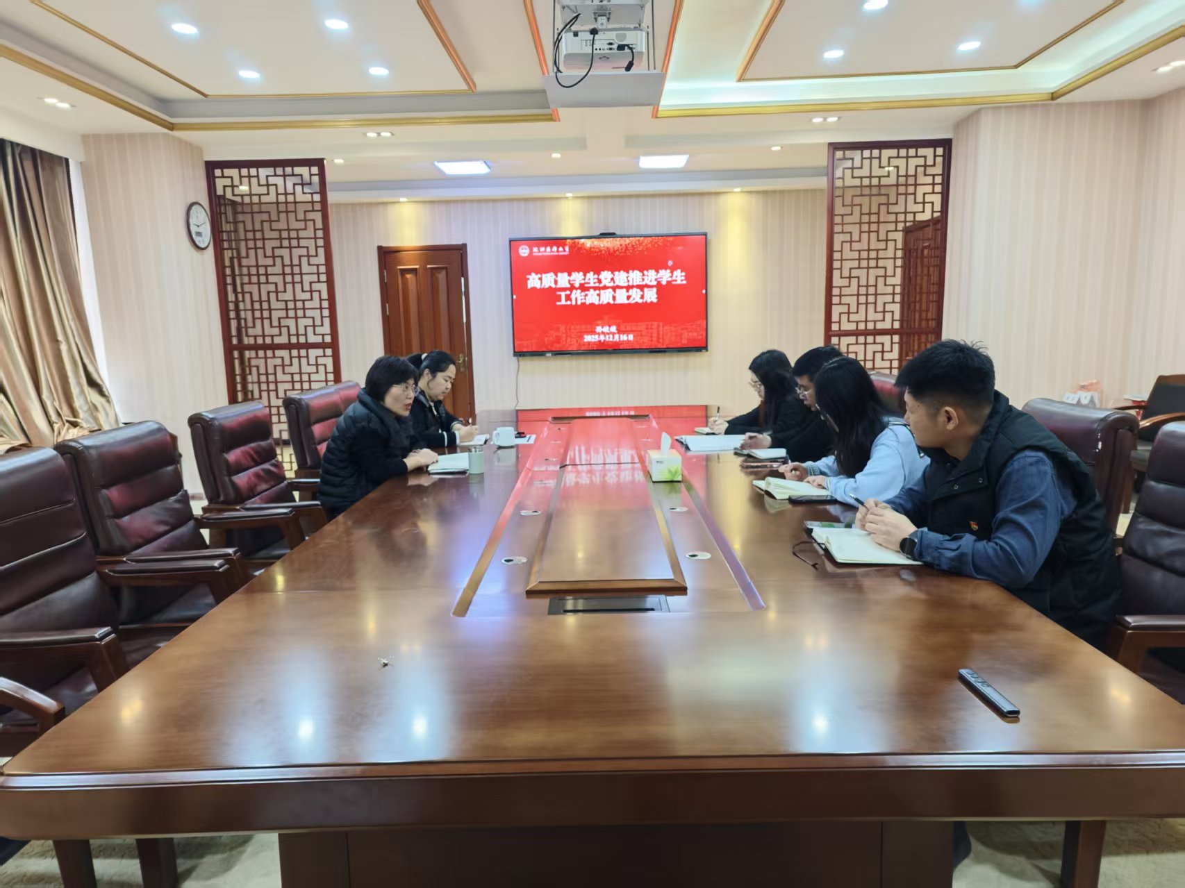12月16日上午,学院在学院4楼小会议室召开2025年学生党建工作专项调研反馈会议。学院党委书记孙皎皎、副书记易庆艳、团委书记刘思嘉、组织员及学生党建工作相关负责人参会,会议由易庆艳主持。