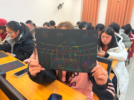 活动现场,主讲人通过精心制作的 PPT,带领大家开启 “沈药美景云端游”。春日绿意盎然、夏日晚霞绚烂、秋日银杏金黄、冬日银装素裹,四季风光在屏幕上徐徐流转。更动人的是,现场展示的学子画作与实景照片相映成趣 —— 羽毛球场的活力瞬间、校园角落的落叶纷飞、图书馆的静谧时光,现实与艺术交融,定格下学子心中最美的沈药图景。