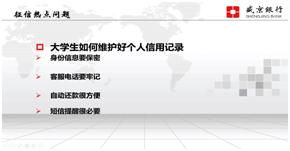 此次征信知识讲座,让每一个同学都意识到了诚信的重要性,作为即将踏入社会的大学生,我们应该理性消费,不攀比,不信网贷,秉承“珍爱信用记录,享受幸福人生”的理念,诚信坦然地面对生活。