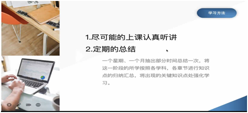 党支部2019级三位成功保研的正式党员分别就整体学习方法、专业学习注意事项以及如何规划大学生活三个方面展开介绍。将自己三年积累的学习经验、成长的心路历程倾情分享,并以切身经历,鼓励大家利用专业优势条件,积极参加数学建模竞赛、大学生计算机设计竞赛以及创新创业大赛等,在锻炼自己、提升个人能力的同时为日后发展打好基础。