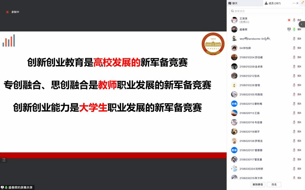 盛春辉教授分别站在高校角度、教师角度以及学生角度阐述了创新创业的重要性,引导在场教师以专创融合、思创融合拓宽职业发展路径,鼓励广大学生在创新创业大赛中激发个人潜能,提升综合能力。
