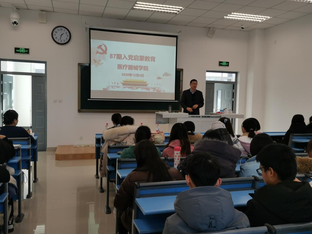 为进一步提高学生对党的认识,提高学生的政治意识,更好的完成党交给新时代大学生的使命与担当,12月4日下午,best365足球官网党委书记吴恩华在第四教学楼201教室为2020级全体新生上了一堂生动的入党启蒙教育课。报告会由学院党委副书记赵宏格主持, 学院组织员、辅导员和全体新生同学聆听了党课,重温入党初心。
