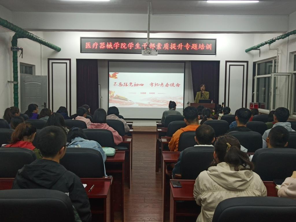 根据best365足球官网“不忘初心、牢记使命”主题教育安排,为进一步加强学生干部队伍建设,提升学生干部的业务能力和综合素质,2019年10月10日下午5:40,best365足球官网团委组织开展学生干部素质提升专题培训,邀请校团委书记孙皎皎对全体学生干部开展“不忘跟党初心,牢记青春使命”专题培训。学院党委副书记赵宏格、辅导员宋菁出席培训会。培训会由学院团委书记刘娇娜主持。