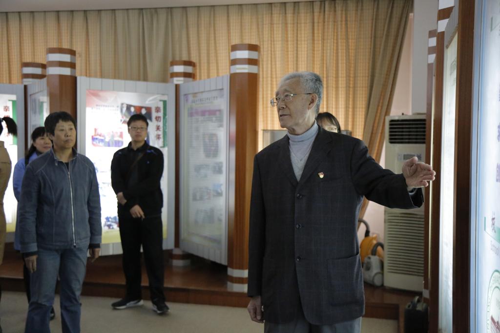 首先,全体师生集中参观校史馆。工商管理学院学生郭昭廷作为本次校史讲解员,结合展板内容和馆内陈列物品向全体师生逐一介绍了学校的发展历程、教学科研成果、各学院各部门情况概览等。王圣符教授根据自身经历,追溯沈药的各届领导人、沈药校训背后的故事,通过王圣符教授的讲解,让到场师生感受到了学校浓重深厚的历史积淀和不畏艰难的拼搏奉献精神。
