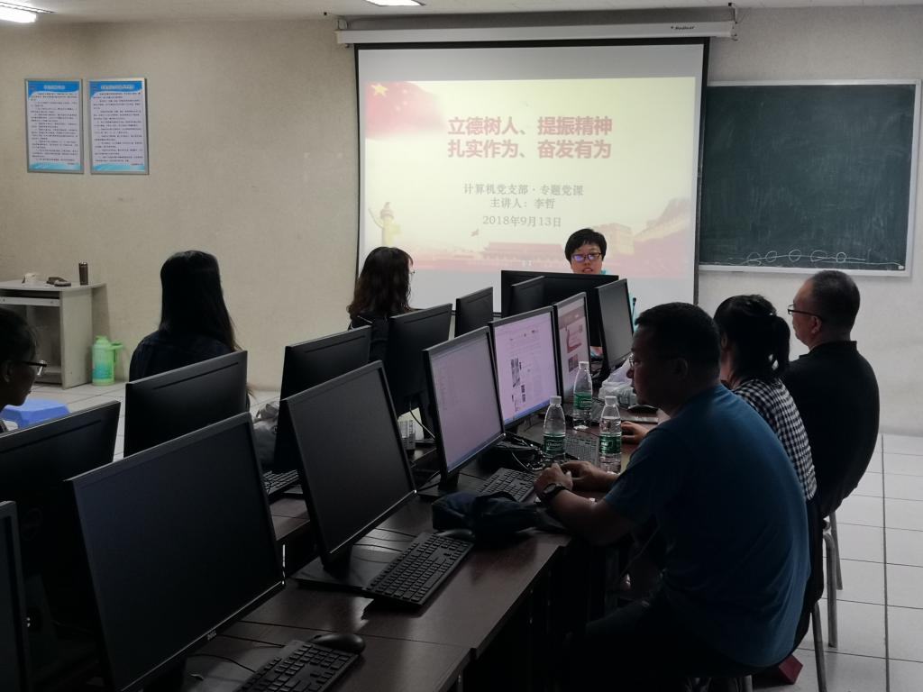 9月13日,best365足球官网党委书记李哲在校本部计算机房为计算机党支部上题为《立德树人 提振精神 扎实作为 奋发有为》党课。