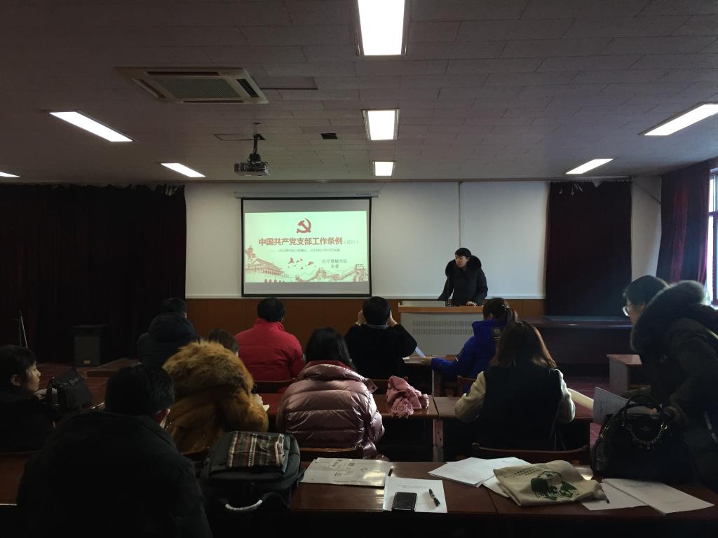 为进一步加强和改进党支部工作,加强党的组织体系建设,全面提升党支部组织规范化、强化党支部的政治功能,2019年1月2日,best365足球官网党委在主校区图书馆第二报告厅召开专题理论学习会,认真学习《中国共产党支部工作条例(试行)》。学院党委委员、纪委委员、党支部书记,组织员和各支部党员代表参会学习会。