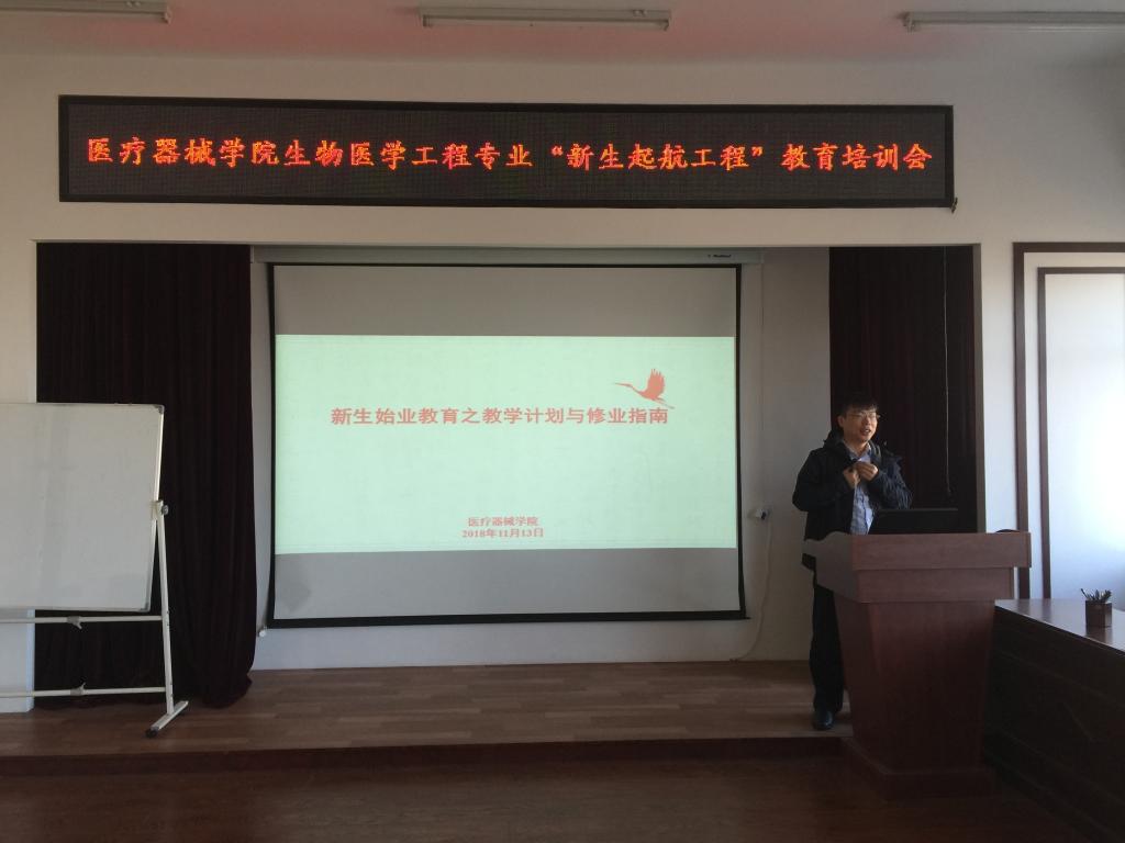 9月18日,院长张景海为大一新生开展新生专业教育讲座,张院长从中国医疗器械行业的模式、中国医疗器械新产品注册分类及产品分类、医疗器械产业发展状况、医疗器械行业对人才的需求、best365足球官网概况、best365足球官网科研发展方向等六部分为学生做专业介绍,并列举大量实例,使学生对专业有了初步的了解和认识。