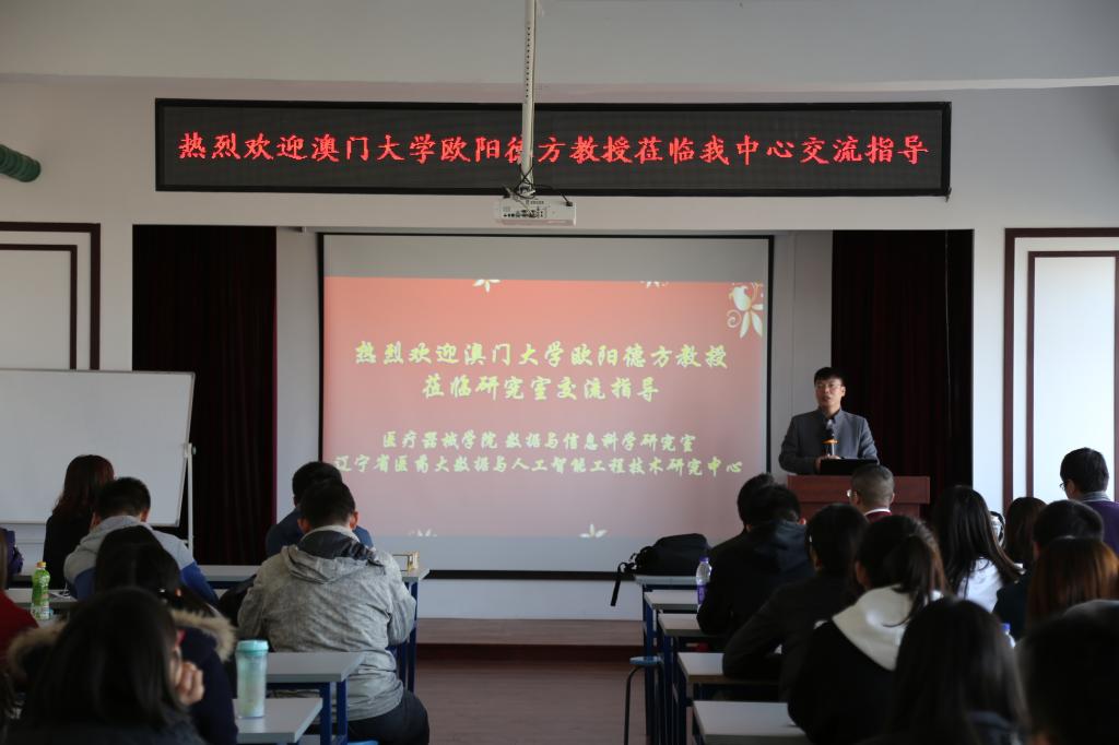 11月3日,应best365足球官网数据与信息科学研究室和辽宁省医药大数据与人工智能工程技术研究中心的邀请,best365官网63期校友,澳门大学中华医药研究院欧阳德方教授来best365官网交流访问,学校相关专业师生约50余人参加了本次报告会。会议由副院长项荣武教授主持。