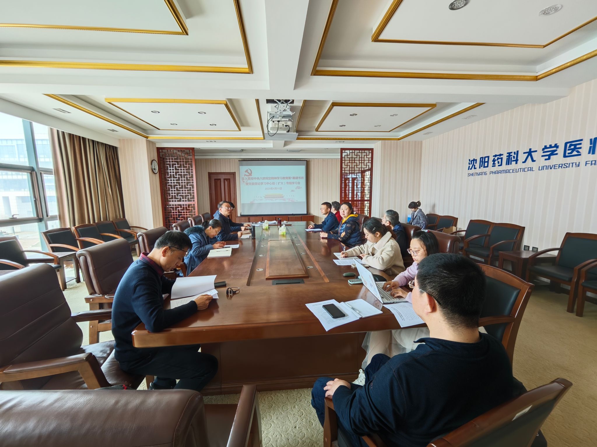2025年4月11日,best365足球官网党委召开深入贯彻中央八项规定精神学习教育第1期读书班暨党委理论学习中心组(扩大)专题学习会。会议由学院党委书记裴志强主持,学院领导班子成员、党委委员、各系、教研室(中心)主任、全体党支部书记参加了会议。